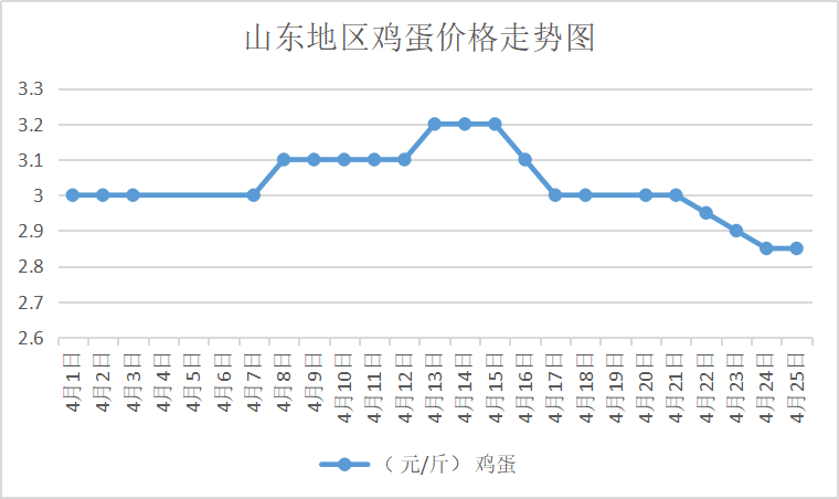 鸡病专业网消息:4月25日,山东地区莱阳鸡蛋2.9元/斤,稳;青岛鸡蛋3元/斤,稳,各超市、商场等零售价3.3-3.4元/斤,稳;诸城到户2.8元/斤,稳;安丘到户2.8元/斤,稳;昌乐到户2.8元/斤,稳;寿光到户2.8元/斤,稳;昌邑到户2.8元/斤,稳;高密到户2.8元/斤,稳;青州到户2.8元/斤,稳;临朐到户2.8元/斤,稳;莱州到户2.9元/斤,稳;威海鸡蛋今天到户2.85元/斤,稳;临沭鸡蛋2.8元/斤,稳;沂水牛岭埠鸡蛋2.8元/斤,稳;沂南鸡蛋2.8元/斤,稳;莒南鸡蛋2.8元/斤,稳;兰陵县鸡蛋2.8元/斤,稳;日照鸡蛋2.8元/斤,稳;莒县鸡蛋2.8元/斤,稳;日照辛萁商贸鸡蛋2.8元/斤,稳;泗水鸡蛋价格84元/30斤,稳;济宁、汶上鸡蛋84元/30斤,稳;梁山、东平红蛋价格84元/30斤,稳;枣庄滕州地区鸡蛋混码主流到户85元/30斤,稳;泰安地区新泰鸡蛋价格84元/30斤,稳;菏泽地区曹县主流到户收80-81元/30斤,稳;成武鸡蛋价格80-81元/30斤,稳;单县到户81元/30斤,稳;聊城莘县83元/30斤,稳。