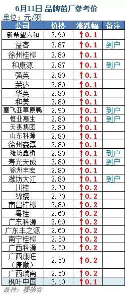 激情连涨,节节上扬--6月11日毛鸭、鸭苗行情