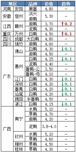 提示:以上为信息人员收集,红色代表上涨、绿色代表下跌;不同地区鹅场有一定差异,价格仅供参考!