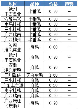 | 广西 | 南宁(水鸭) | 5.10 | - |