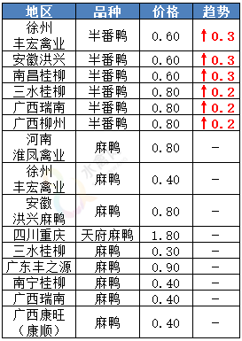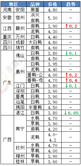 | 广西 | 南宁(水鸭) | 4.70 | - |