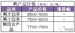 今天鸭产品端再度开涨:监测区域,今日规模冷藏企业白条暂稳、半片鸭上涨100元/吨,分割、副产类产品普涨,具体如下:
