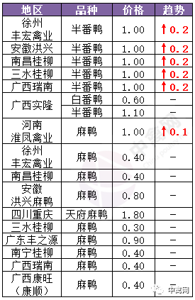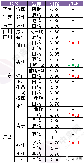 | 广西 | 南宁(水鸭) | 4.70 | 0.10 |