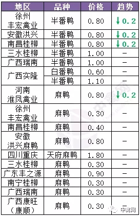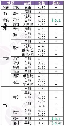 | 广西 | 南宁(水鸭) | 4.60 | - |