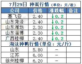 7月29日水禽行情走势简析:支撑不足,偃旗息鼓