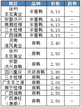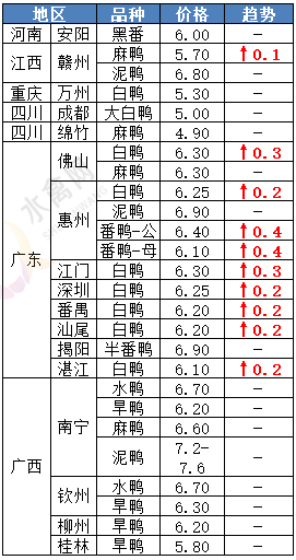 | 广西 | 南宁(水鸭) | 6.70 | - |
