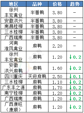 提示:以上为信息人员收集,红色代表上涨、绿色代表下跌;不同地区鹅场有一定差异,价格仅供参考!