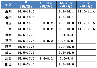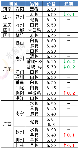 | 广西 | 南宁(水鸭) | 6.90 | - |