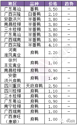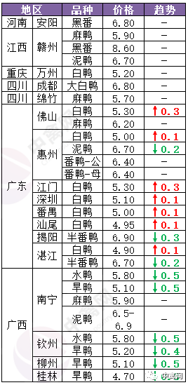 | 广西 | 南宁(水鸭) | 5.80 | -0.50 |