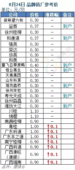 8月24日水禽行情简报:震荡筑底,毛苗徘徊