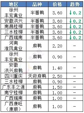 提示:以上为信息人员收集,红色代表上涨、绿色代表下跌;不同地区鹅场有一定差异,价格仅供参考!