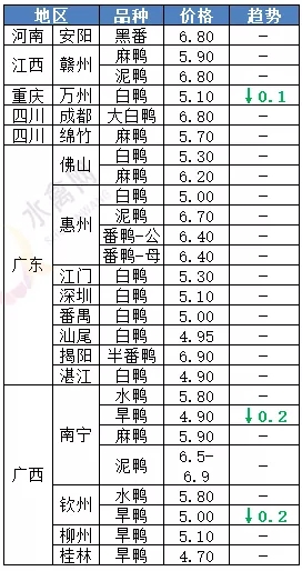 | 广西 | 南宁(水鸭) | 5.80 | - |