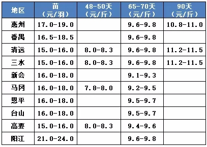 | 钦州(旱鸭) | 4.90 | -0.20 |