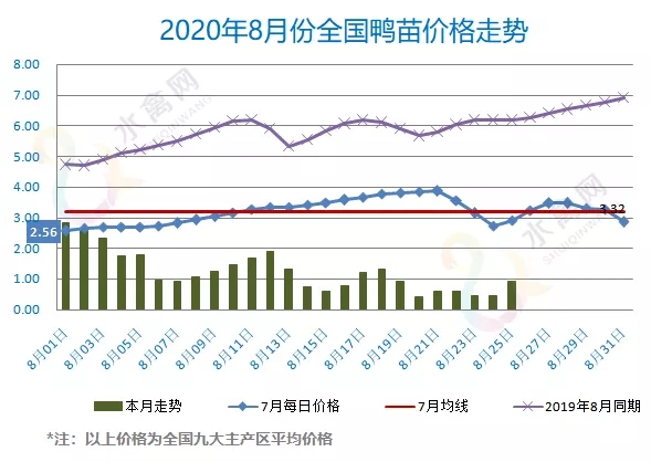 最新行情:明日上游端鸭苗、种蛋行情否极泰来、全线恢复,各区域主流主流孵化厂家开票报价普涨0.2-0.5元/羽不等。8月中旬以来鸭苗巨幅下调、全线暴跌,市场再度出现打包、填埋、销毁惨烈一幕。近期北方冷藏恢复投放,孵化企业计划好转、顺势上调报价。全国监测区域鸭苗成交均价0.93元/羽,较去年8月同期下跌4.94元/羽,跌幅84.2%,环比7月下跌2.28元/羽。