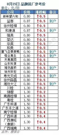 直线拉涨,苗蛋价格全线恢复--8月25日水禽行情