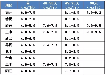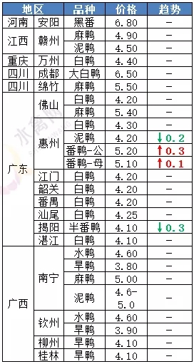| 广西 | 南宁(水鸭) | 4.60 | - |