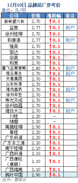 12月10日水禽行情简报:群起推升,鸭苗连涨