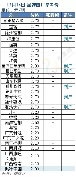 12月14日水禽行情简报:广东跳涨,强势反击