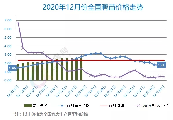 最新行情:明日全国鸭苗价格不破不立、横盘运行,各区域主流孵化厂家参考报价连续五天持稳。进入12月份以来,阳性冻品流入、冷链食品安全问题密集爆发,市场利空频出、鸭产品价格暗降,层层反馈、压力传导之下,产业链价格整体涨难跌易,或临再度下行。全国监测区域鸭苗成交均价2.56元/羽,较去年12月同期上涨1.04元/羽,涨幅68.4%,环比11月上涨0.25元/羽。