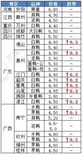 | 广西 | 南宁(水鸭) | 4.80 | - |