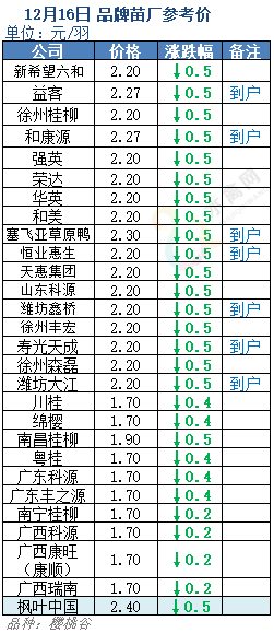 12月16日水禽行情简报:直线狂降,鸭苗暴跌