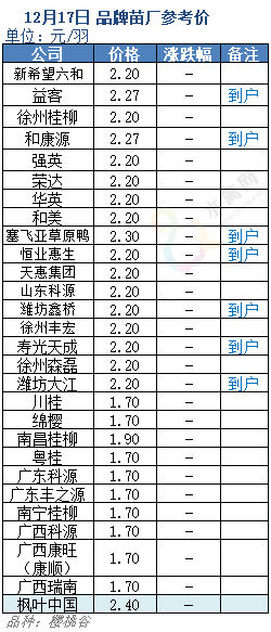12月17日水禽行情简报:震荡跌落,权重下行