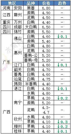| 广西 | 南宁(水鸭) | 4.80 | - |