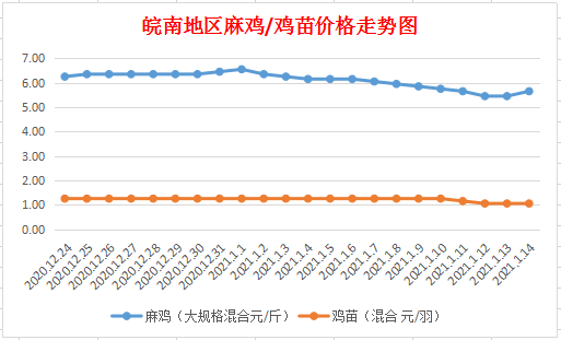 鸡病专业网消息:2021年1月13日-14日皖南地区817-麻鸡行情最新走势