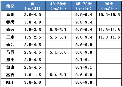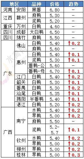 | 广西 | 南宁(水鸭) | 5.40 | 0.20 |