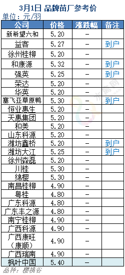2月28日全国商品鸭出栏价格支撑不足、全线回落。目前北方鲁豫皖苏地区规模冷藏企业基本全线复工,原料方面各厂家以回收宰杀合同鸭为主,由于订单不足,节后开业的工厂屠宰量普遍不高。年后毛鸭出现一度大幅上涨,而本周冻品失守连跌,利空打压之下北方山东、河南地区成品鸭出栏价已全面跌回4元以内。
