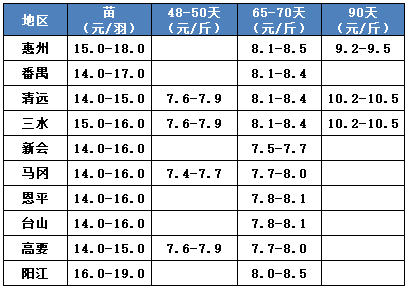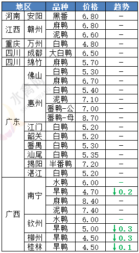 | 广西 | 南宁(水鸭) | 6.00 | - |