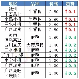 提示:以上为信息人员收集,红色代表上涨、绿色代表下跌;不同地区鹅场有一定差异,价格仅供参考!