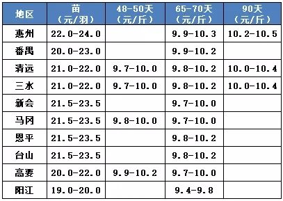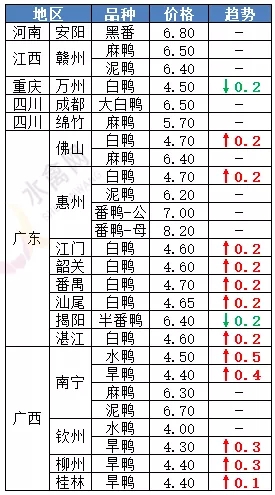 | 广西 | 南宁(水鸭) | 4.50 | 0.50 |