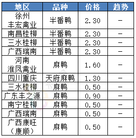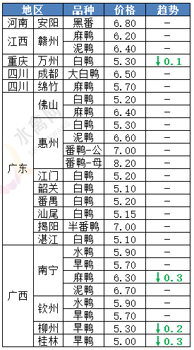| 广西 | 南宁(水鸭) | 5.90 | - |