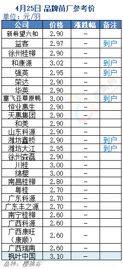 4月25日水禽行情简报:集体重挫,全线破三