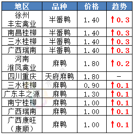提示:以上为信息人员收集,红色代表上涨、绿色代表下跌;不同地区鹅场有一定差异,价格仅供参考!