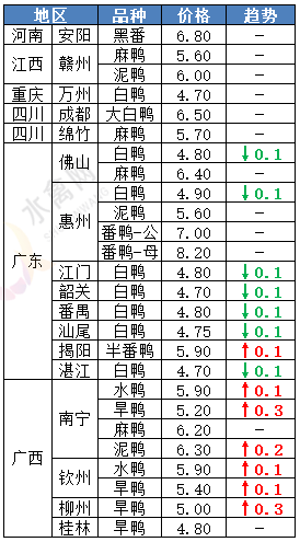 | 广西 | 南宁(水鸭) | 5.90 | 0.10 |