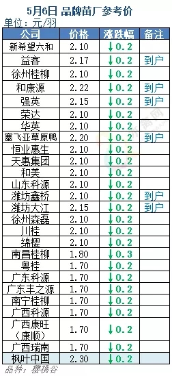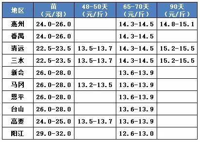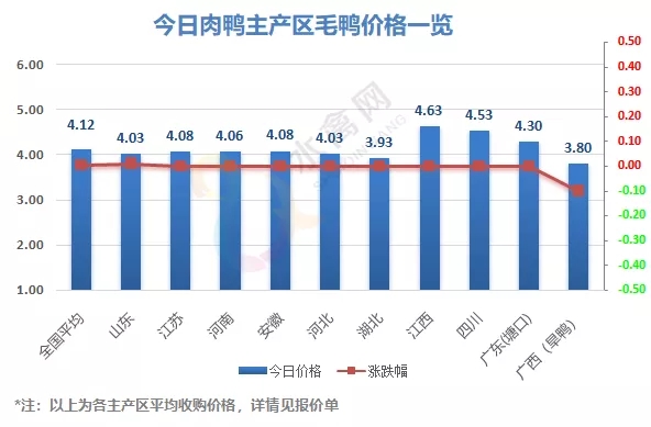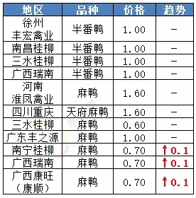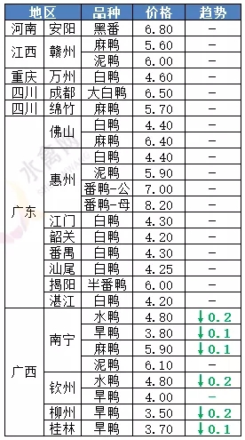 | 广西 | 南宁(水鸭) | 4.80 | -0.20 |