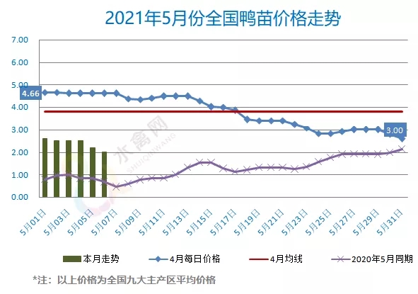 最新行情:明日上游端鸭苗、种蛋行情抱团瓦解、失守连跌。目前五一小长假临近尾声,假期期间养殖端、养殖公司本就补栏较少,加之客运高峰、高速拥堵,给厂家派苗带来不利影响,明天各区域主流孵化厂家发苗价再跌0.2-0.3元/羽。