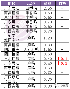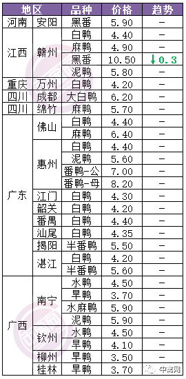 | 广西 | 南宁(水鸭) | 4.50 | - |