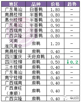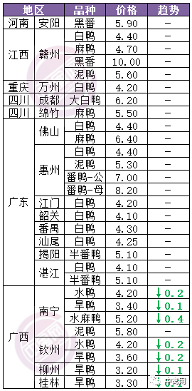 | 广西 | 南宁(水鸭) | 4.40 | 0.20 |