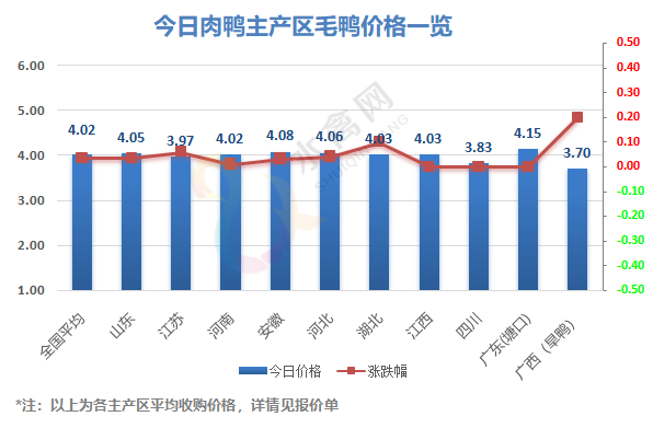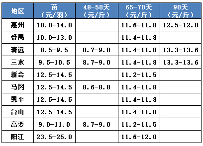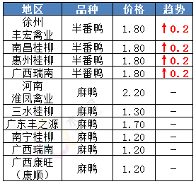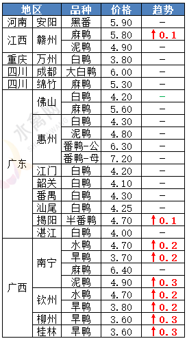 | 广西 | 南宁(水鸭) | 4.70 | 0.20 |