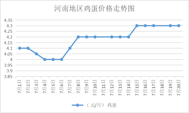 鸡病专业网消息:7月20日,河南郑州鸡蛋4.35元/斤,稳;新密鸡蛋4.35元/斤,稳;荥阳鸡蛋4.35元/斤,稳;中牟鸡蛋4.35元/斤,稳;周口鸡蛋4.25元/斤,稳;商丘鸡蛋128元/30斤,稳;鹤壁鸡4.25元/斤,稳;汝州鸡蛋4.3元/斤,稳;开封鸡蛋128-129元/30斤,稳;漯河鸡蛋4.25元/斤,稳;漯河临颍鸡蛋4.25元/斤,稳;许昌鸡蛋4.3元/斤,稳;南阳鸡蛋4.25元/斤,稳;南阳邓州鸡蛋4.25元/斤,稳;新乡鸡蛋4.25元/斤,稳;安阳鸡蛋4.25元/斤,稳;新郑鸡蛋4.35元/斤,稳;登封鸡蛋4.35元/斤,稳;平顶山鸡蛋4.3元/斤,稳;驻马店鸡蛋4.3元/斤,稳;三门峡鸡蛋4.3元/斤,稳;焦作鸡蛋4.3元/斤,稳;信阳鸡蛋4.25元/斤,稳;濮阳鸡蛋4.25元/斤,稳。