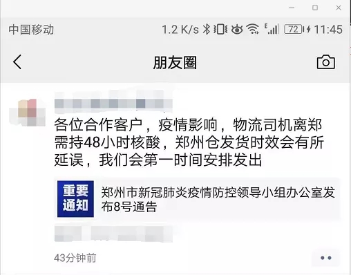 洪灾余波未了,疫情再起波澜!郑州冻品流通时效受限!司机须持48h核酸阴性报