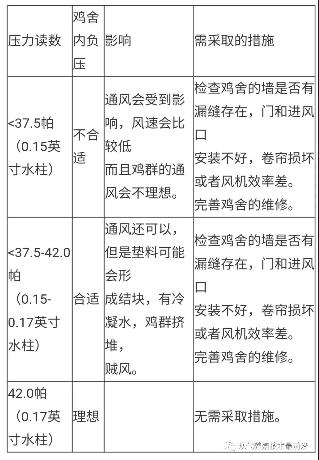 鸡舍内的负压可作为鸡舍密闭性能的指标,为了使鸡舍达到理想的通风以及控制进入鸡舍的空气到达所需的位置,空气必须以正确的方式速度进入鸡舍,这样鸡舍就必须要达到一定的负压。