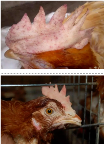 鸡白冠病在因受感染的鸡内部组织器官出血,导致鸡冠缺血发白而得名。