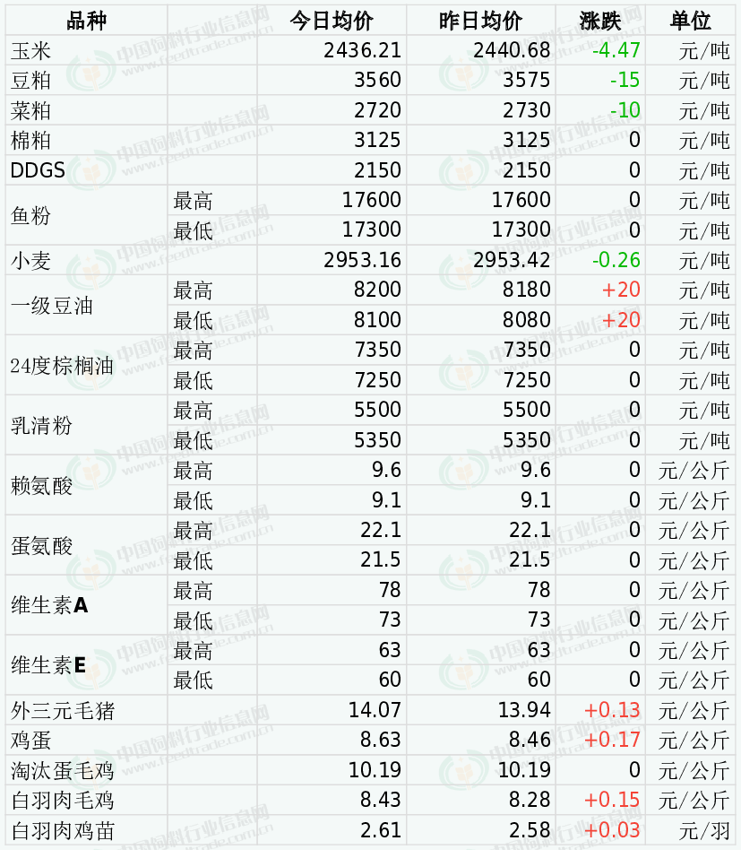 近日豆粕、仔猪价格下跌,市场购销偏淡,下游观望心态偏强,乳清粉市场偏弱整理。