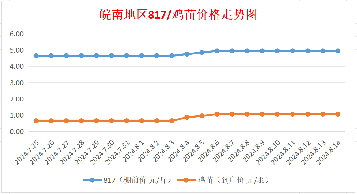 皖南地区817/鸡苗价格走势图(来源:鸡病专业网)