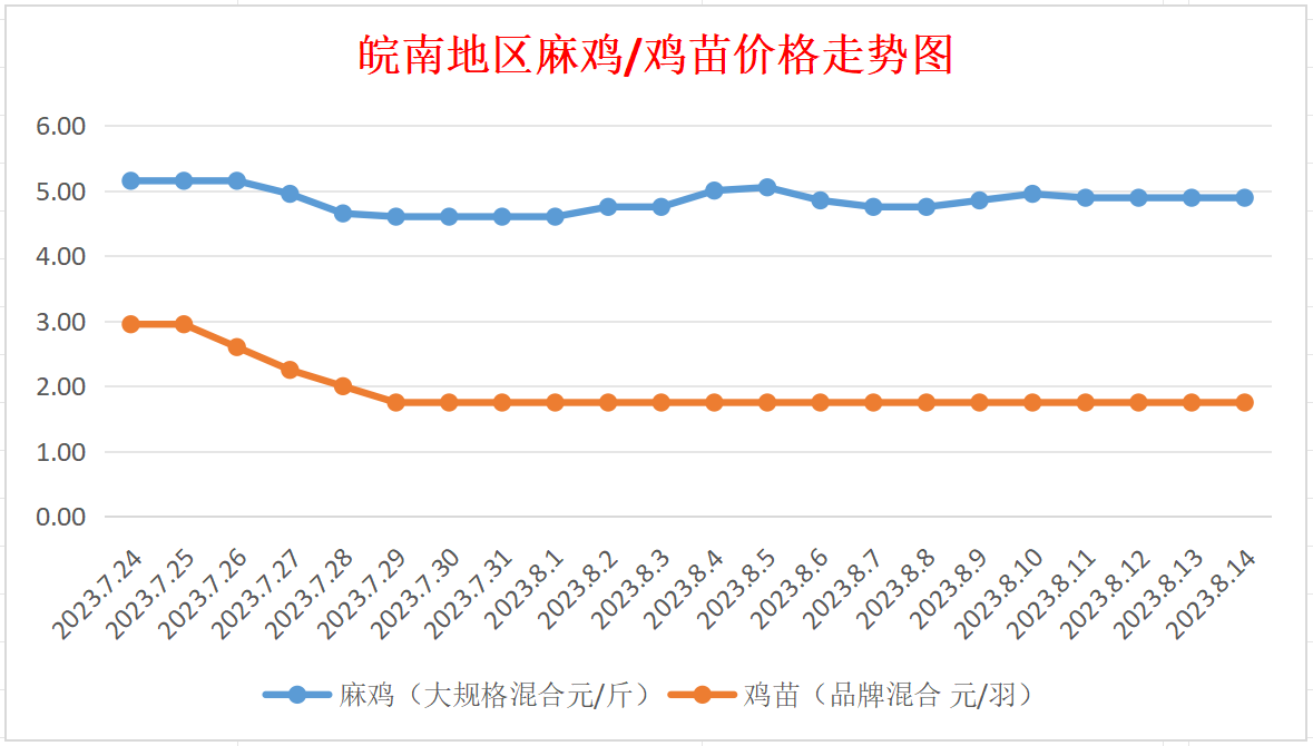 鸡病专业网独家信息:2024年8月14日皖南地区817-麻鸡行情最新走势