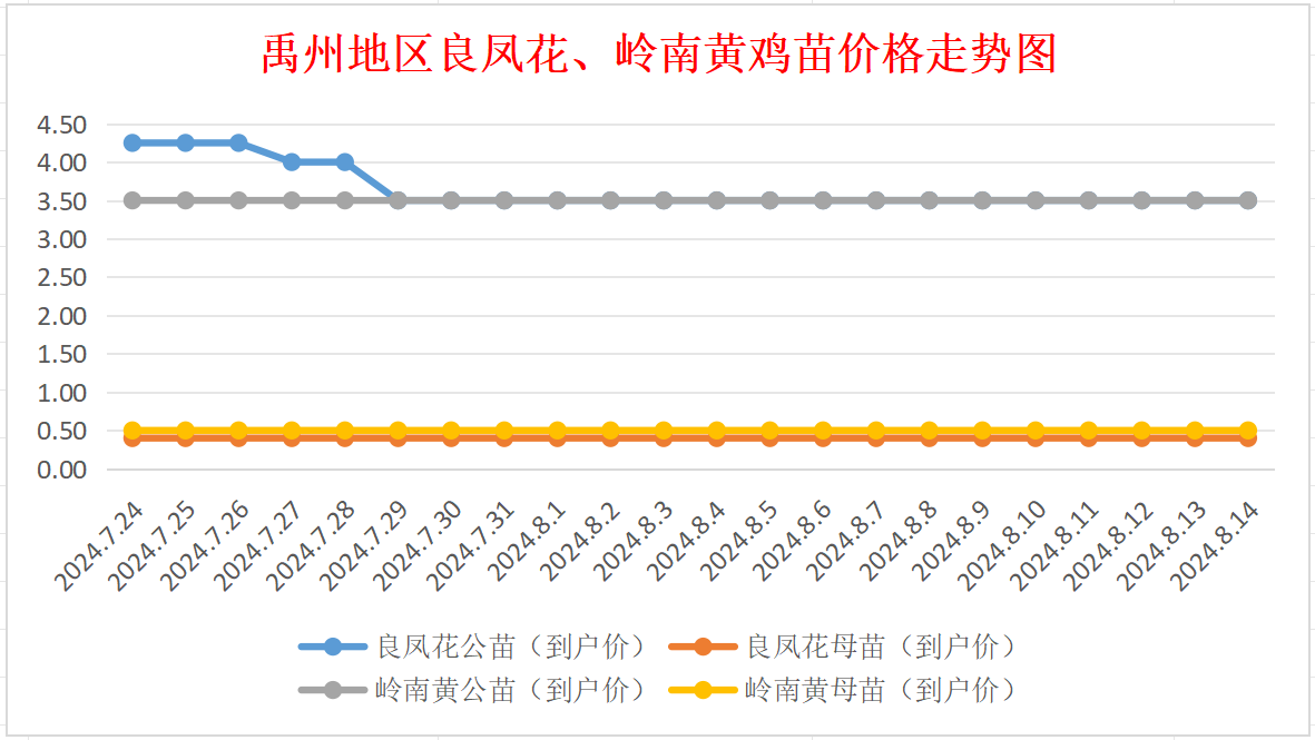 8月14日禹州地区良凤花、岭南黄鸡苗价格行情